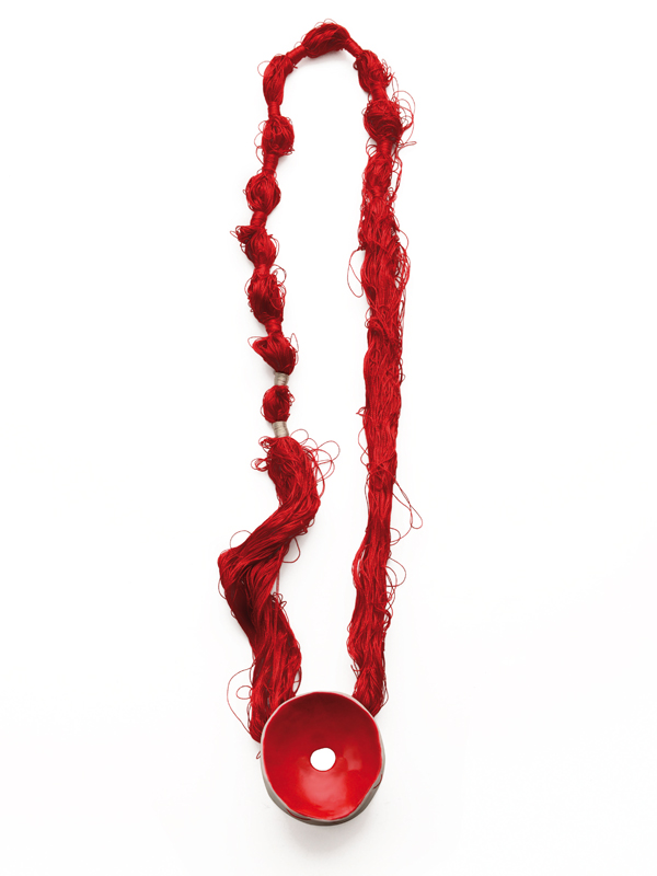 The shapes used in my collection are inspired by instruments used in rituals. They are made in horn, shell, textile and ceramic.